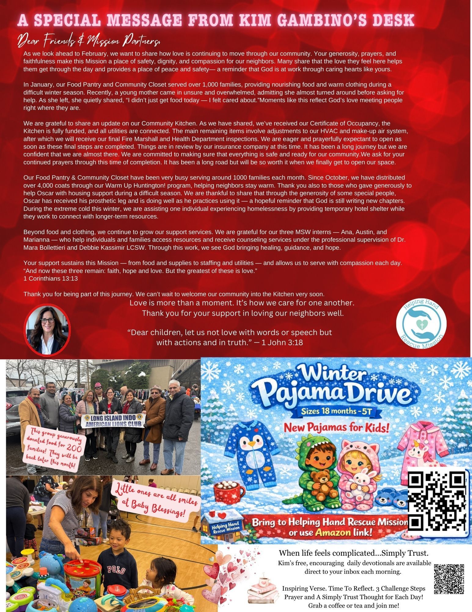 We believe love changes lives. Through compassion, service, and faith in action, we share hope with individuals and families—reminding them they are seen, valued, and never alone.